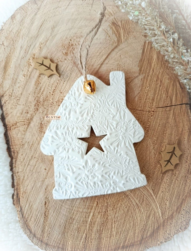 Décoration en argile / Ornement de Noël ~ Maison (relief houx)