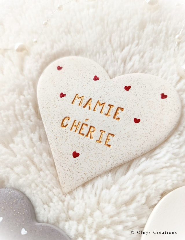 Magnet en argile 2 modèles au choix "Mamie chérie / Mamie en or" ou PERSONNALISABLE selon vos souhaits. Chérissez votre/vos mamie(s) avec un petit cadeau fait main à l'occasion de la fête des grands-mères.