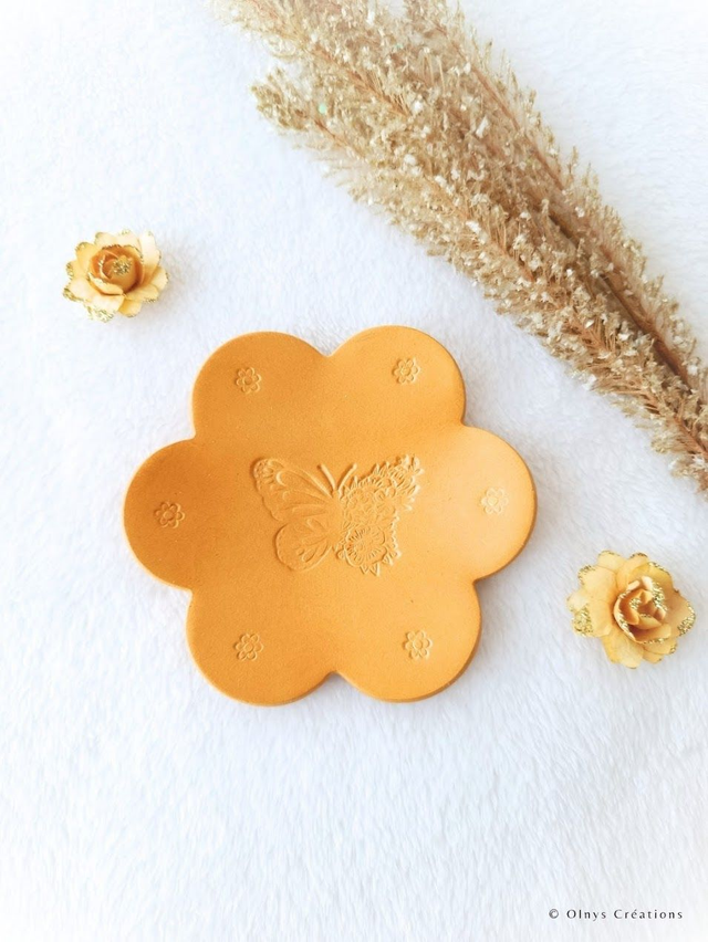 Coupelle porte bijoux en argile couleur sable avec motif papillon, pour déposer d'une jolie manière vos bijoux lorsque vous ne les portez pas ou bien encore vos clés par exemple.